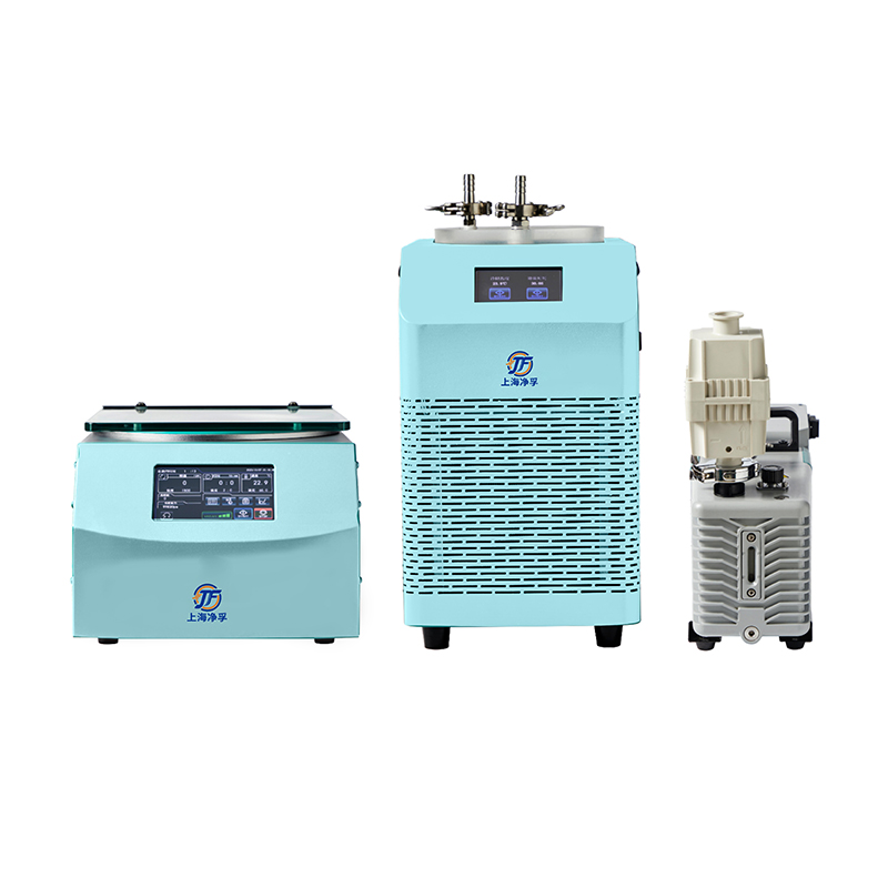 真空离心浓缩仪组合,包含浓缩仪主机、真空泵和低 温冷阱,适用于对样品处理量较大,设备需要长时间运 转,且对浓缩效率有更高要求的科研单位、工业企业等,可 作为生产仪器,配备1.5ml~250ml不等的EP管、玻璃试管、 各种离心管、色谱瓶、离心瓶或96孔板等使用,具有可以把样品中的水和有机溶剂快速安全蒸发的功能。